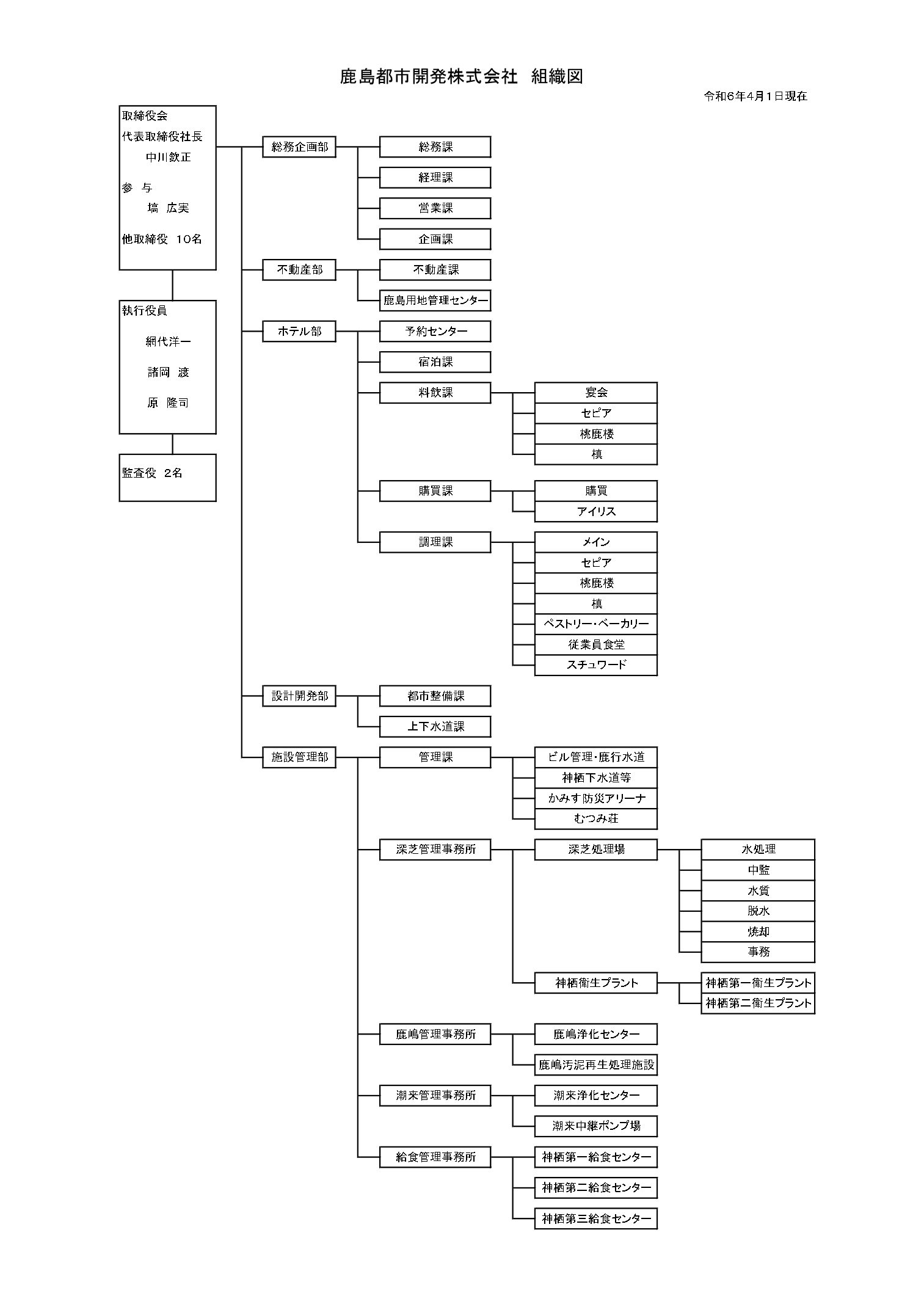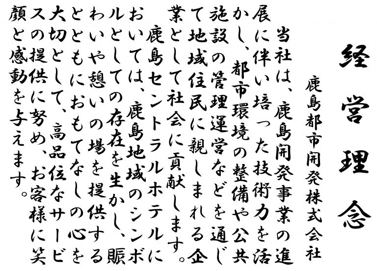 以来、鹿島セントラルビル等における不動産賃貸業や不動産の販売、鹿島セントラルホテル(昭和47年6月開業)の経営をはじめ、住宅団地や工業団地の造成事業等を通じて、良好で快適な住環境を提供し、また、都市環境・生活環境整備事業の拡充を図るため、公共施設の管理・設計業務等に参画し、第三セクターとしての役割と地域性を活かし、着実な歩みを続けてまいりました。 平成12年6月には、鹿島地域のシンボルタワーとして鹿島セントラルビル新館(鹿島セントラルホテル)を開業し、当地域において開催された2002年ワールドカップサッカーの主たる宿泊施設に利用されました。今では、県の内外から当地域を訪れる人たちの宿泊施設として、また、地域の方々の婚礼や一般宴会、並びに立地企業等の大規模会議などにご利用をいただいております。 さらには、平成14年12月には温泉施設をオープンし、鹿島セントラルビル新館(鹿島セントラルホテル)と合わせ地域の人々が集い・交流する賑わいとくつろぎの場を提供しております。 当社といたしましては、鹿島セントラルホテルの経営を通して地域の皆様方をはじめ立地企業や県内外のご利用者に親しまれ愛されるホテルを目指すとともに、鹿島セントラルビルを中心とした不動産賃貸事業を展開し、鹿島地域における商業・業務の核の形成に貢献してまいります。また、施設管理事業や設計管理事業においては、技術力の向上に努めながら公共施設の運転管理や公共事業の設計管理等について的確に対応してまいります。 引き続き、鹿島地域の計画的な都市づくりに携わってきた当社の役割に基づき、鹿島地域の都市機能の充実や賑わいの拠点づくりに努めるとともに、鹿島地域のまちづくりの一翼を担ってまいります。